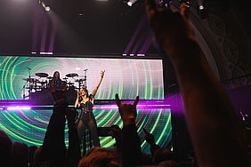 Visuell setzte die Produktion auf großformatige, gestaffelte LED-Wände, die jeweils mit passgenauen Visuals bespielt wurden. Die Bilder strukturierten das Set, verstärkten dramaturgische Bögen und unterstützten die emotionale Lesbarkeit der Songs. Licht und Bild arbeiteten eng zusammen. Das Ergebnis wirkte fast schon filmisch. In Verbindung mit einer sauberen Tontechnik entstand ein Livebild, das den orchestralen Anspruch der Band ebenso ernst nahm wie ihre Eingängigkeit.